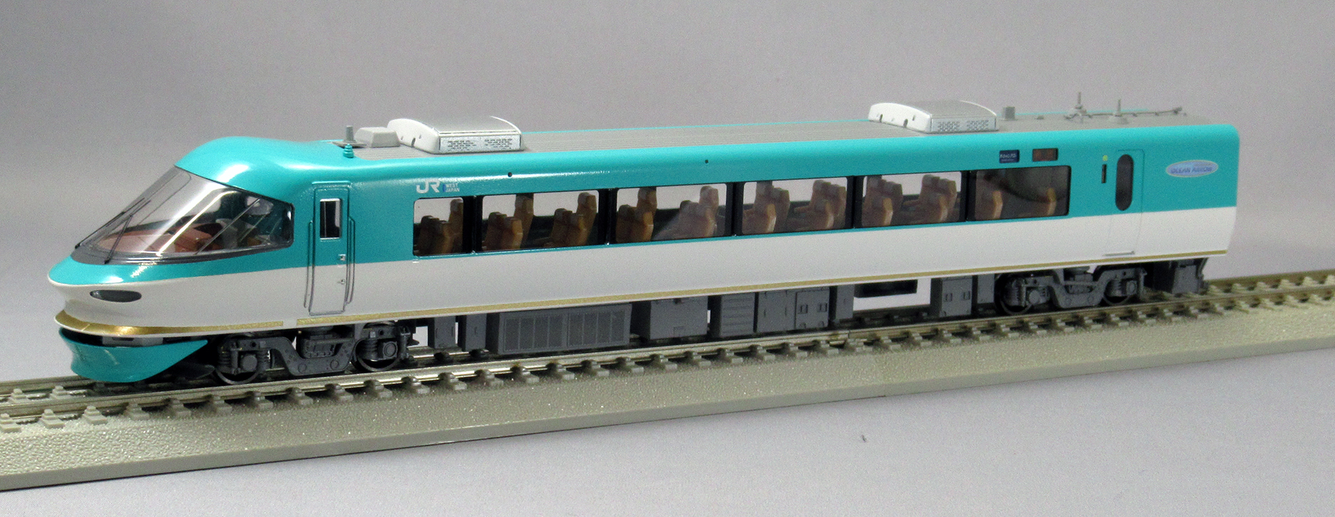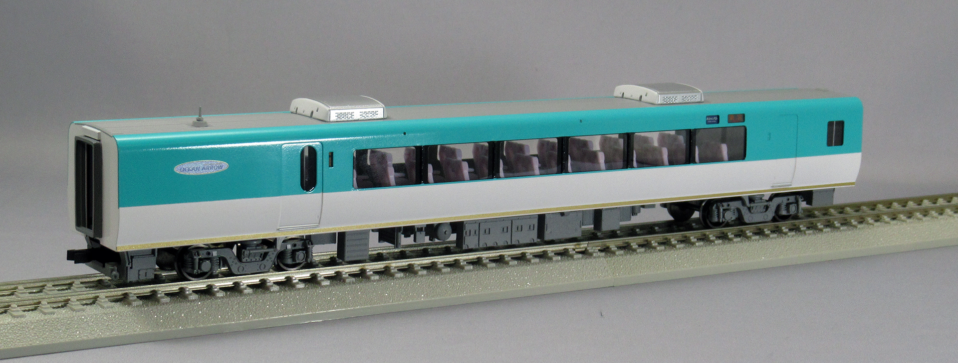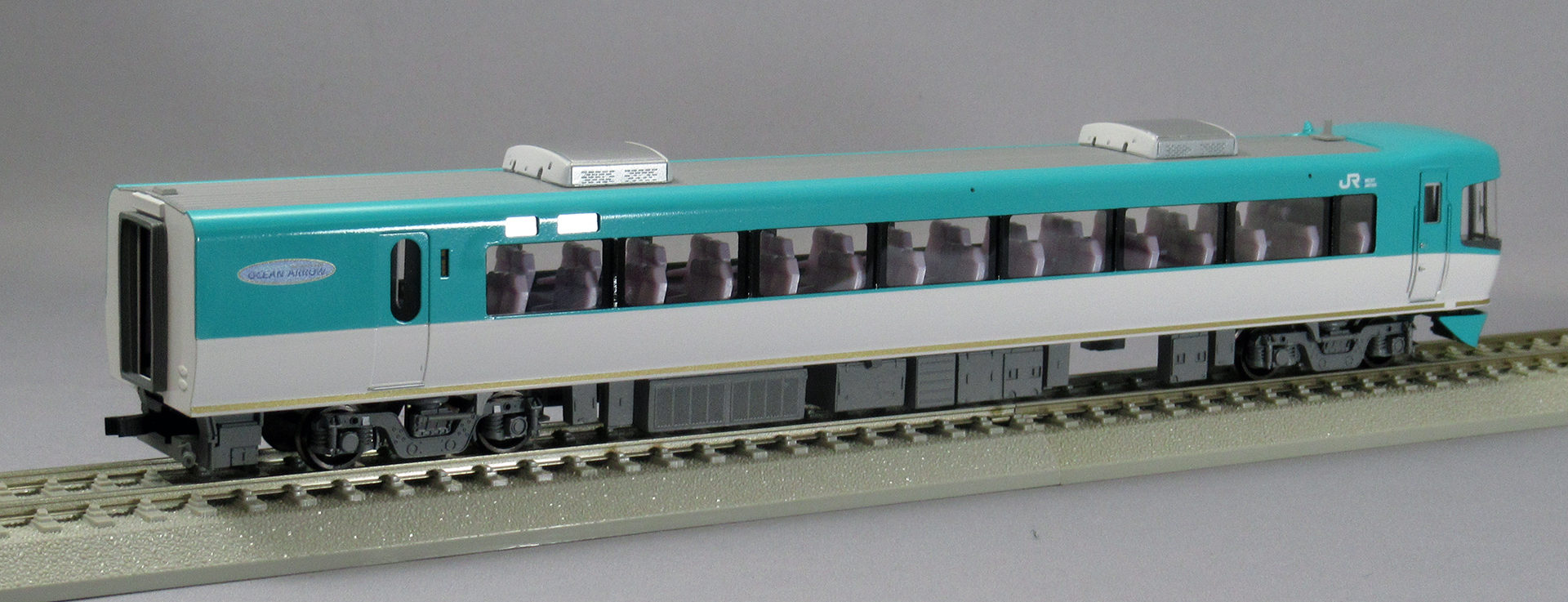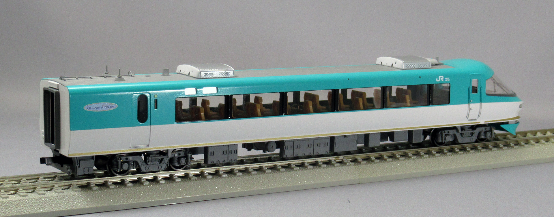 283系はJR西日本が1996年に運用を始めた直流型特急電車です。それまで381系で運用されていた関西から南紀方面へ向かう特急電車の「くろしお」「スーパーくろしお」のサービスと速度向上の為に開発されました。明るいオーシャングリーンの塗装やイルカのような流線形の先頭部を持つパノラマグリーン車など紀勢本線での運用に相応しいデザインとなっています。今回エンドウではこの283系を「オーシャンアロー」時代の2010年ごろの姿にて製品化いたしました。